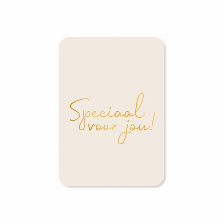 Dit leuke minikaartje met goudfolie is natuurlijk ideaal om te geven in combinatie met een mooi cadeau. Stop het minikaartje bij het cadeautje in of bind het minikaartje met een lint of touw aan het cadeautje vast, ook erg leuk om te geven bij een prachtig bos bloemen! Zo wordt het geven van een cadeautje nog leuker!