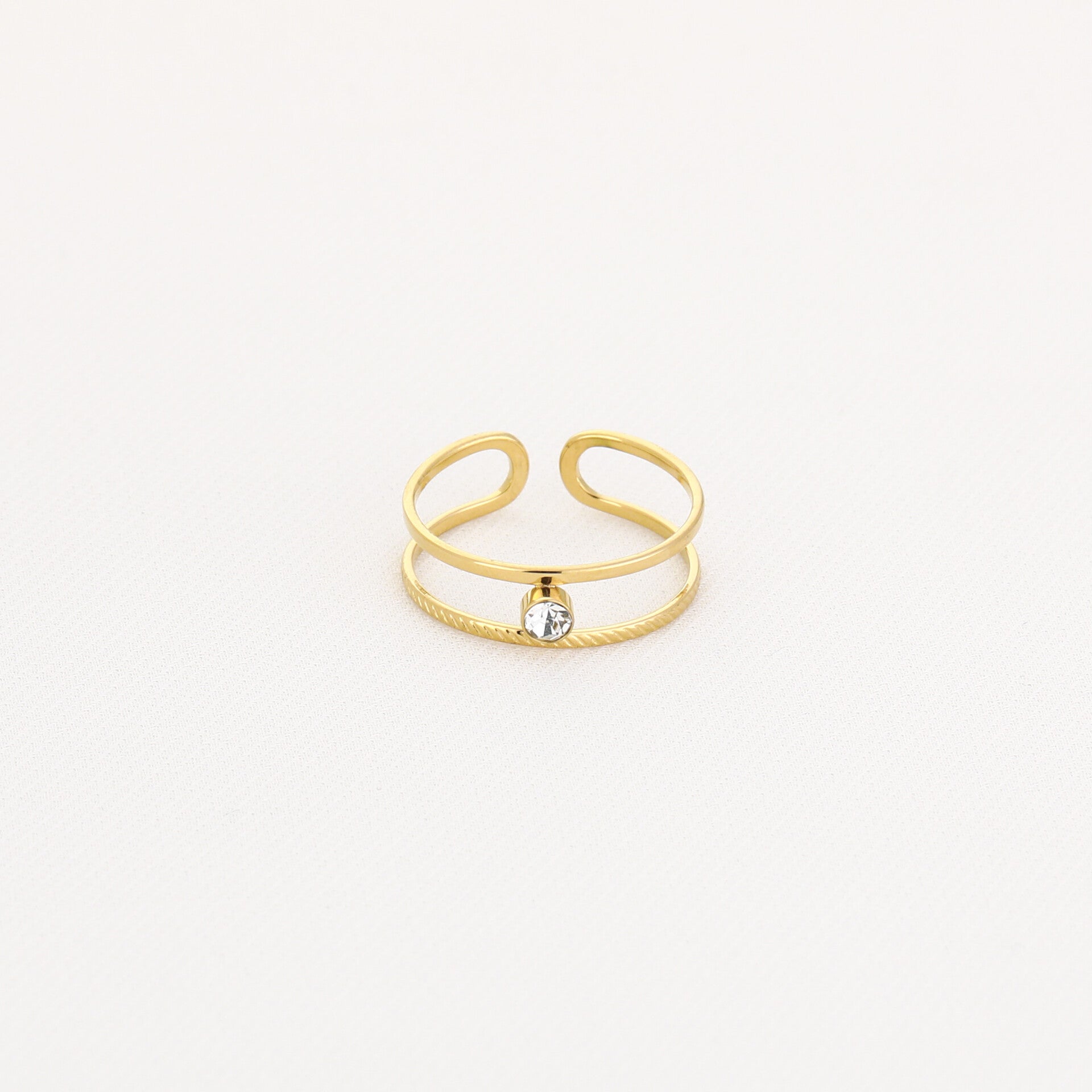 Deze mooie ring met een steentje is een elegant sieraad dat je look een verfijnde touch geeft. Gemaakt van stainless steel, is de ring niet alleen stijlvol, maar ook duurzaam en langdurig. De ring is verstelbaar, zodat je hem gemakkelijk kunt aanpassen voor de perfecte pasvorm.