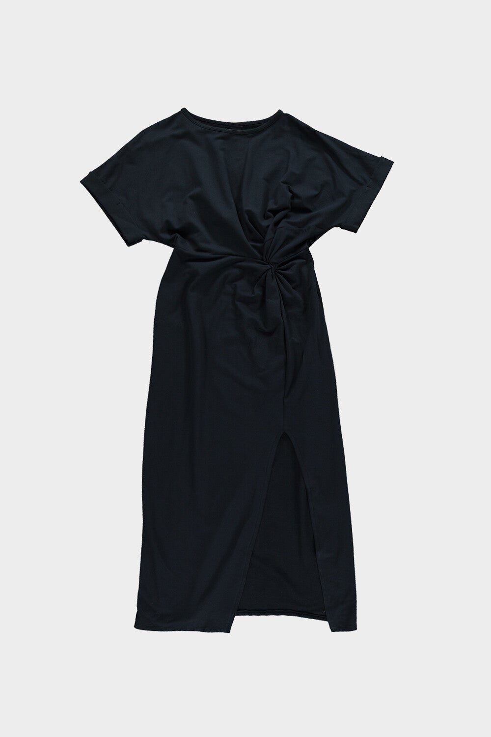 Less is more! Deze zwarte midi/maxi jurk met knoopdetail is de perfecte mix van comfy en chic. Het speelse knoopaccent in de taille creëert een flatterend silhouet, terwijl de split aan de voorzijde zorgt voor een subtiele touch of sexy.