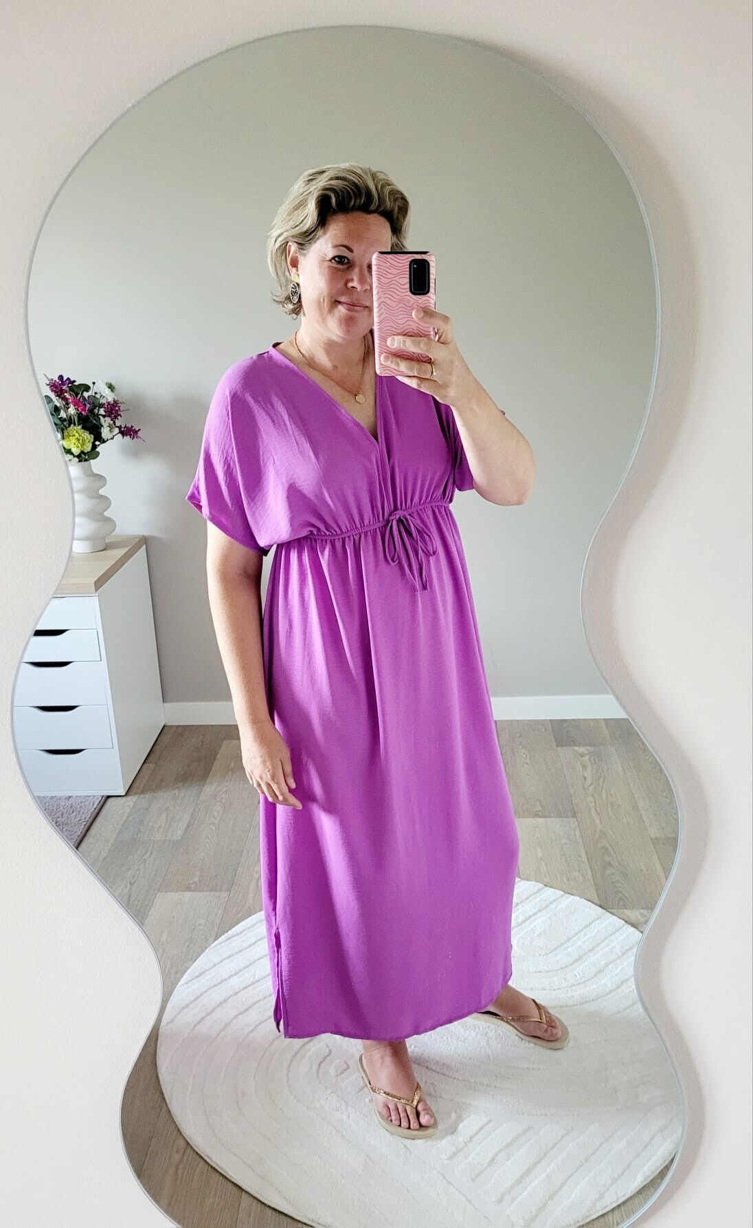 Lange zomerjurk met korte mouwen en strikdetail - Paars
