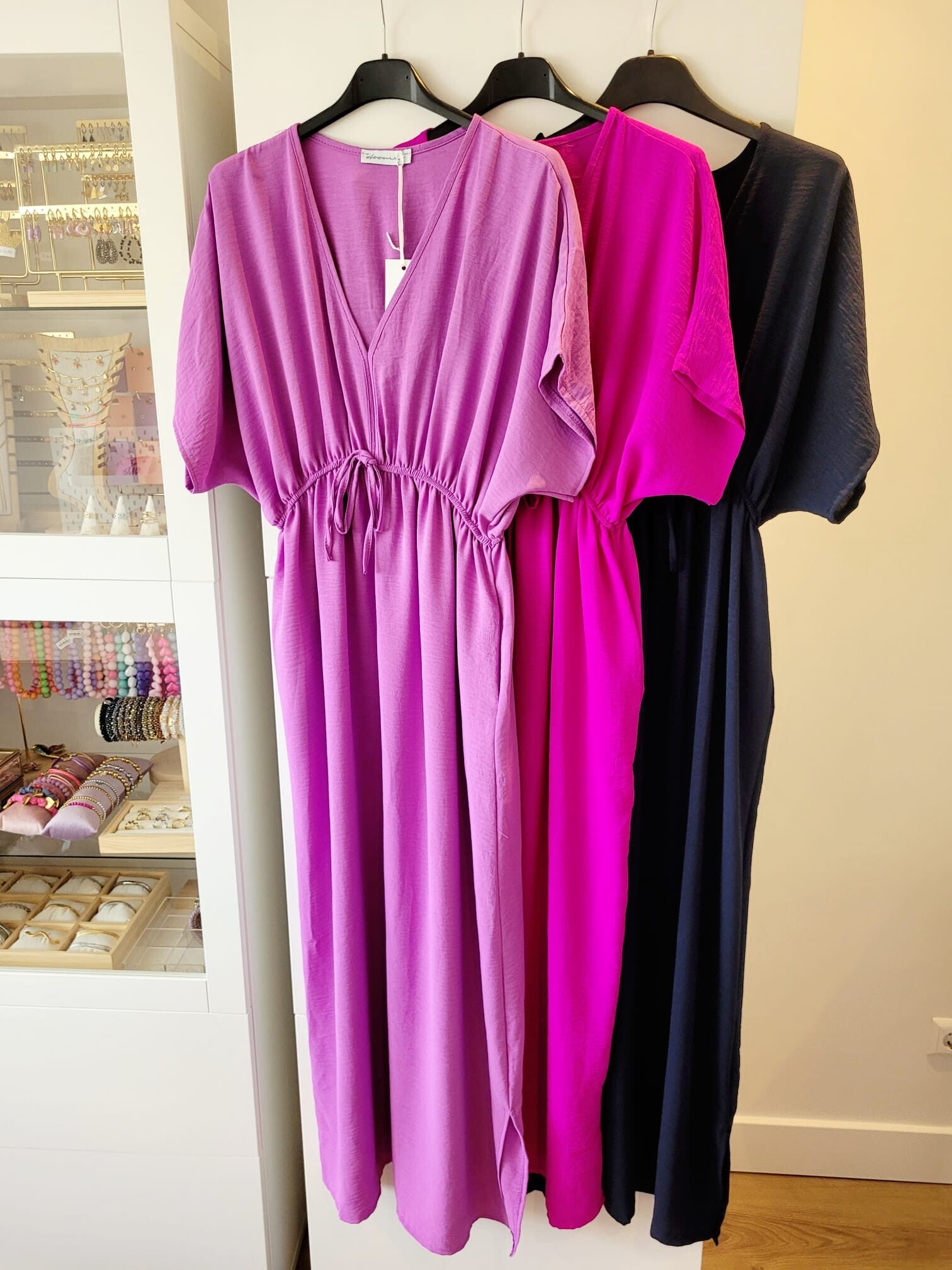 Lange zomerjurk met korte mouwen en strikdetail - Magenta