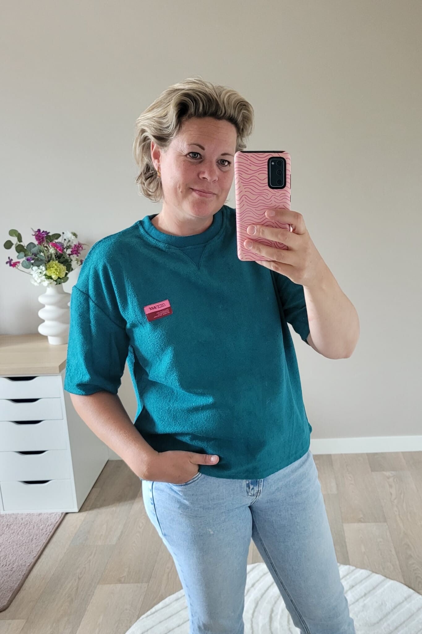 Dit mooie badstof T-shirt is heerlijk zacht en comfortabel dankzij de mix van 80% katoen en 20% polyester. Het shirt heeft een wijd model, korte mouwen en een leuke patch op de borst voor een casual, trendy look.